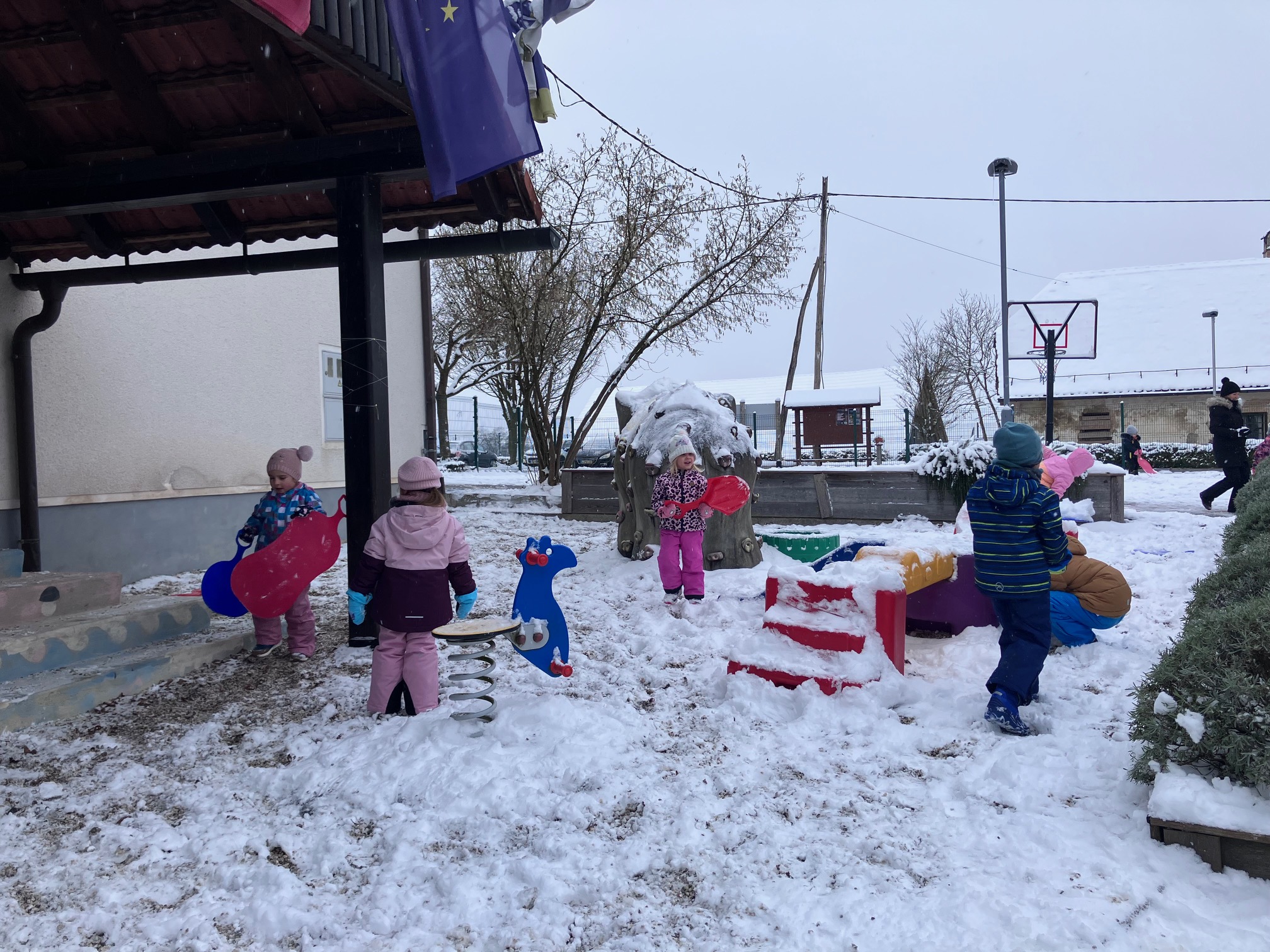 Ob vračanju v vrtec so otroci ponosno nosili lopate in klepetali o svojih snežnih podvigih. Fit dan v snežnem metežu je bil poln gibanja, smeha in zimskega veselja ter še en dokaz, da se lahko tudi v hladnih dneh odlično razgibamo in se ob tem neizmerno zabavamo.